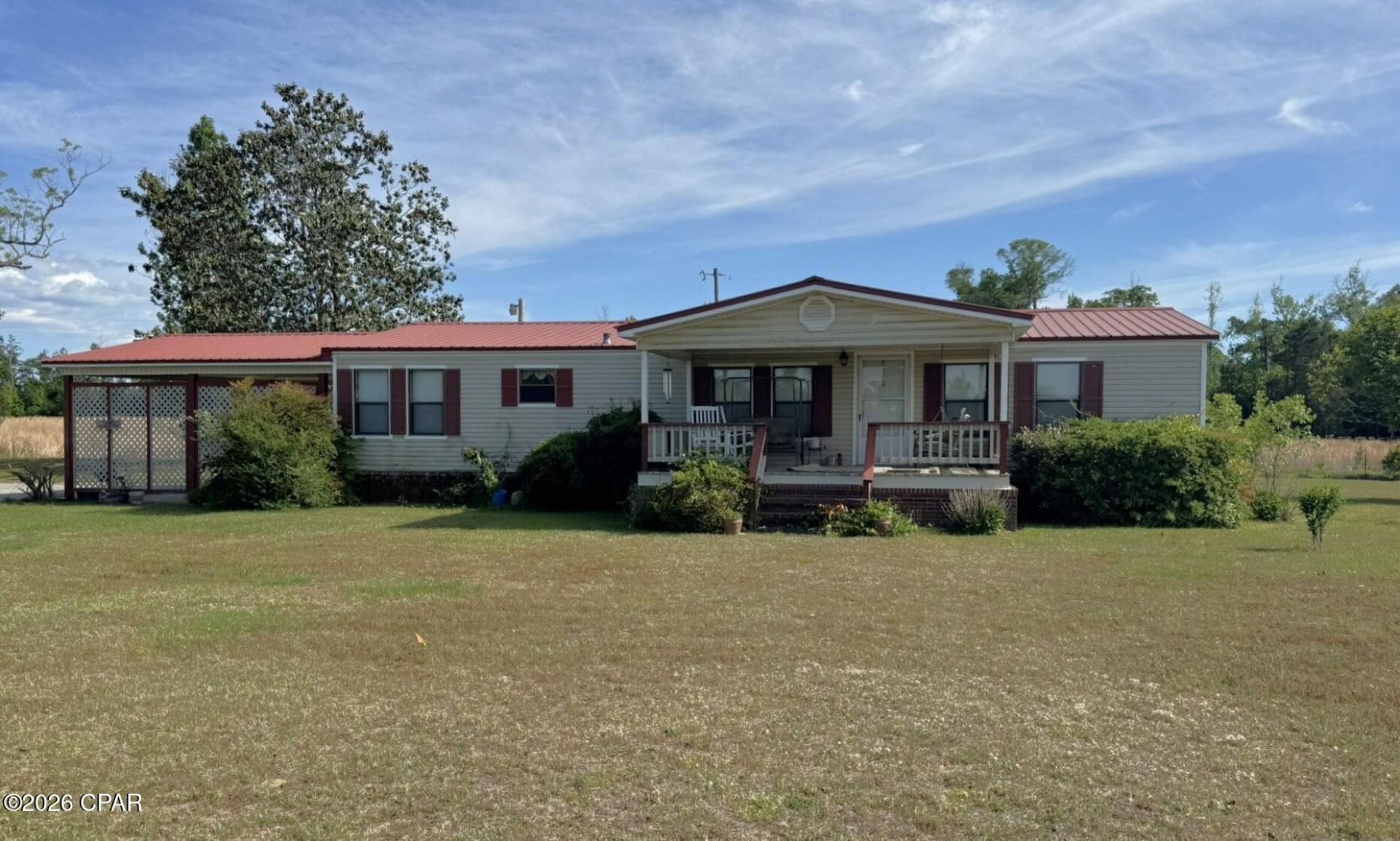 This three-bedroom, two-bath mobile home is situated on approximately 9. 5 acres in a private, peaceful country setting. The property is fenced and partially cross-fenced, making it ideal for animals or small livestock, with no restrictions. Outdoor amenities include a 12 x 20 storage shed and a 10 x 15 metal shed, providing ample storage and workspace options. The home also features an attached carport and a 22 x 12 screened porch overlooking the natural surroundings, perfect for relaxing and enjoying the quiet setting. The HVAC is approximately 12 years old, with the roof replaced in 2018. Inside, the floor plan offers a comfortable split-bedroom layout. The spacious primary suite includes a large bathroom with a soaking tub, separate shower, and dual vanities. The additional bedrooms are generously sized and feature large walk-in closets. The kitchen is equipped with a stove, refrigerator, and dishwasher, and the living area includes a gas fireplace for added warmth and comfort. According to the Property Appraiser's website, the parcel is listed at 21. 35 acres; however, a recent survey has reduced the acreage to approximately 9. 5 acres, offering a more accurate and affordable tract while still providing substantial land and privacy. All measurements are approximate and should be verified by the buyer.