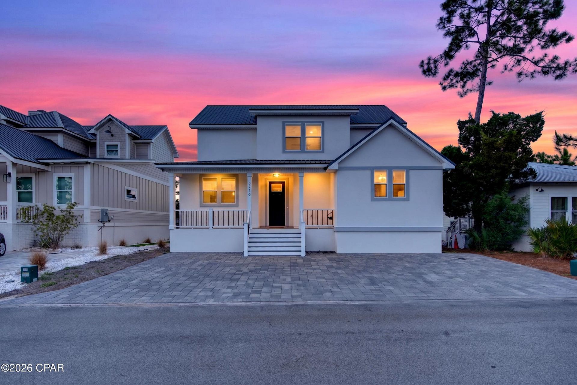 As soon as you step into 6720 Harbor Blvd, you're immediately greeted by an abundance of natural light and serene canal views that set the tone for relaxed coastal living. This new construction home, built in 2023 and never lived in, offers a rare opportunity to own a fully furnished, turnkey residence in a private, gated Panama City Beach community with direct canal access leading to the Gulf. The main living area is anchored by a beautiful electric fireplace with a custom mantle crafted from pecky cypress, adding warmth and character to the modern design. Thoughtfully designed and finished, the home blends comfort with elevated coastal style throughout. The primary suite offers a peaceful retreat featuring a spa-like bathroom with a soaking tub, creating the perfect place to unwind after a day on the water. With four bedrooms and two-and-a-half bathrooms, the layout is both functional and inviting, ideal for full-time living or a luxury coastal getaway. Residents enjoy exceptional community amenities including a relaxing pool and pickleball courts, all within a secure, gated setting. Whether boating from your backyard canal access or relaxing at home, this property delivers effortless waterfront living at its finest.